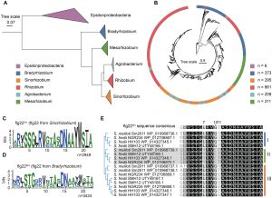 图1. 中华根瘤菌与慢生根瘤菌鞭毛蛋白flg22区域的系统发育与保守性分析