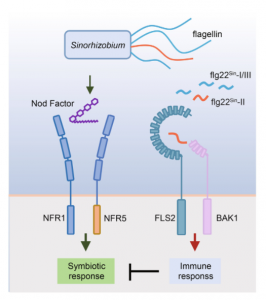图6. (C) 根瘤菌鞭毛蛋白介导的免疫抑制豆科植物结瘤的调控模型